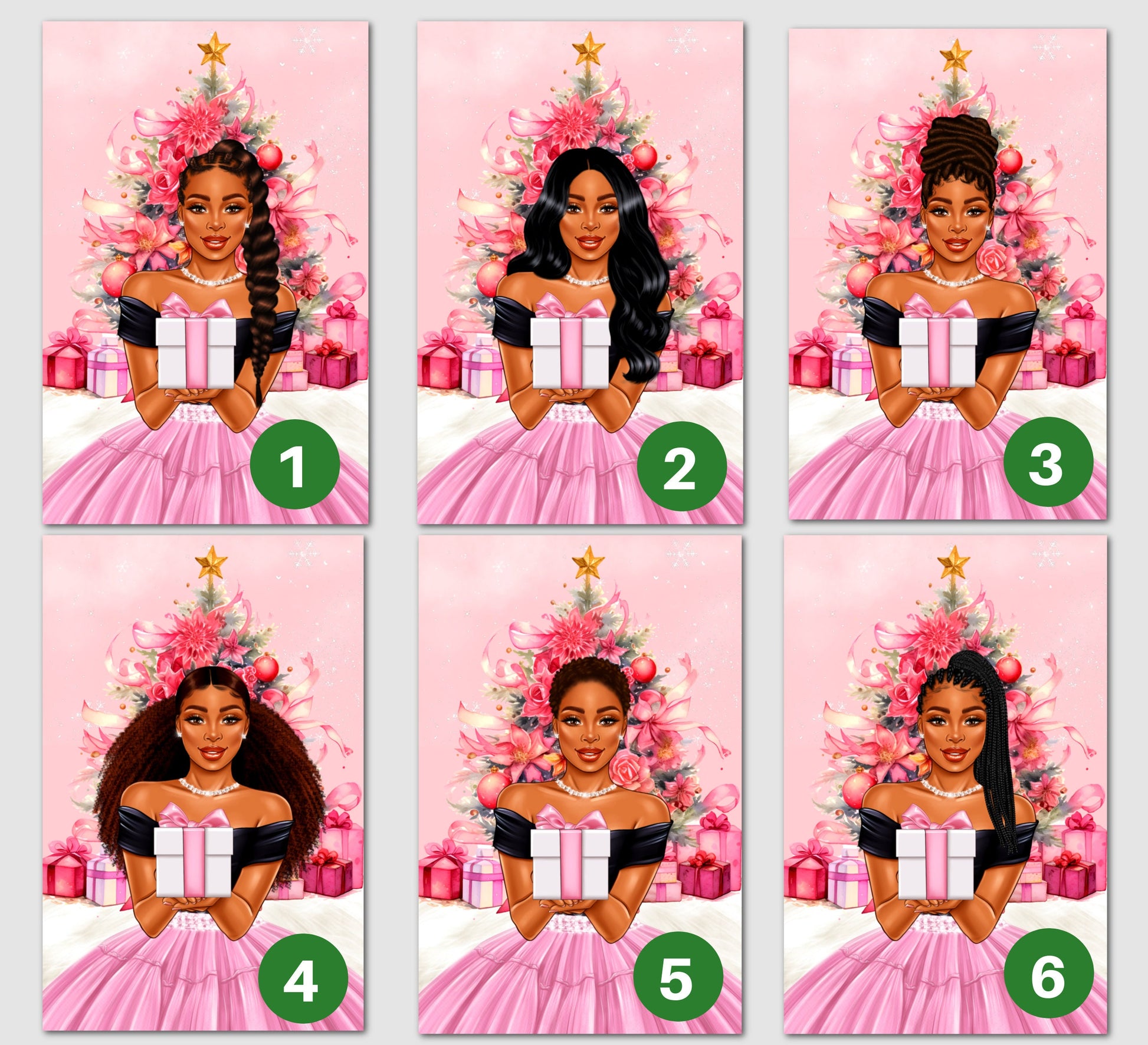 Say Merry Christmas without sacrificing style. Our African American greeting cards are a representation of who you are and how your feeling at the moment. Our cards are blank on the inside, so that you can write a personal message from the heart. Our greeting cards come as (1), (6) or (12) Count. If you would like different styles and tones; please message me the amount for each style and tone, and include your order# that you will receive when you check out. You will have the option to enter personalization information for most cards. Our cards are Full Size. The cards measure 5.5 x 8.5 folded, and 8.5 x 11 inches unfolded. Most of our cards are printed on gloss cardstock, and some are printed on linen cardstock. Our cards are great for Birthdays, Christmas, Anniversaries, Mother's Day, Father's Day, Graduation, Valentine's Day, and many more celebrations. Our greeting cards are great gifts to give to your Mother's, Father's, Brothers, Sisters, Children, Grandchildren, Grandparents,Friends and Co-workers. Give the gift of style and representation for that speacial event.