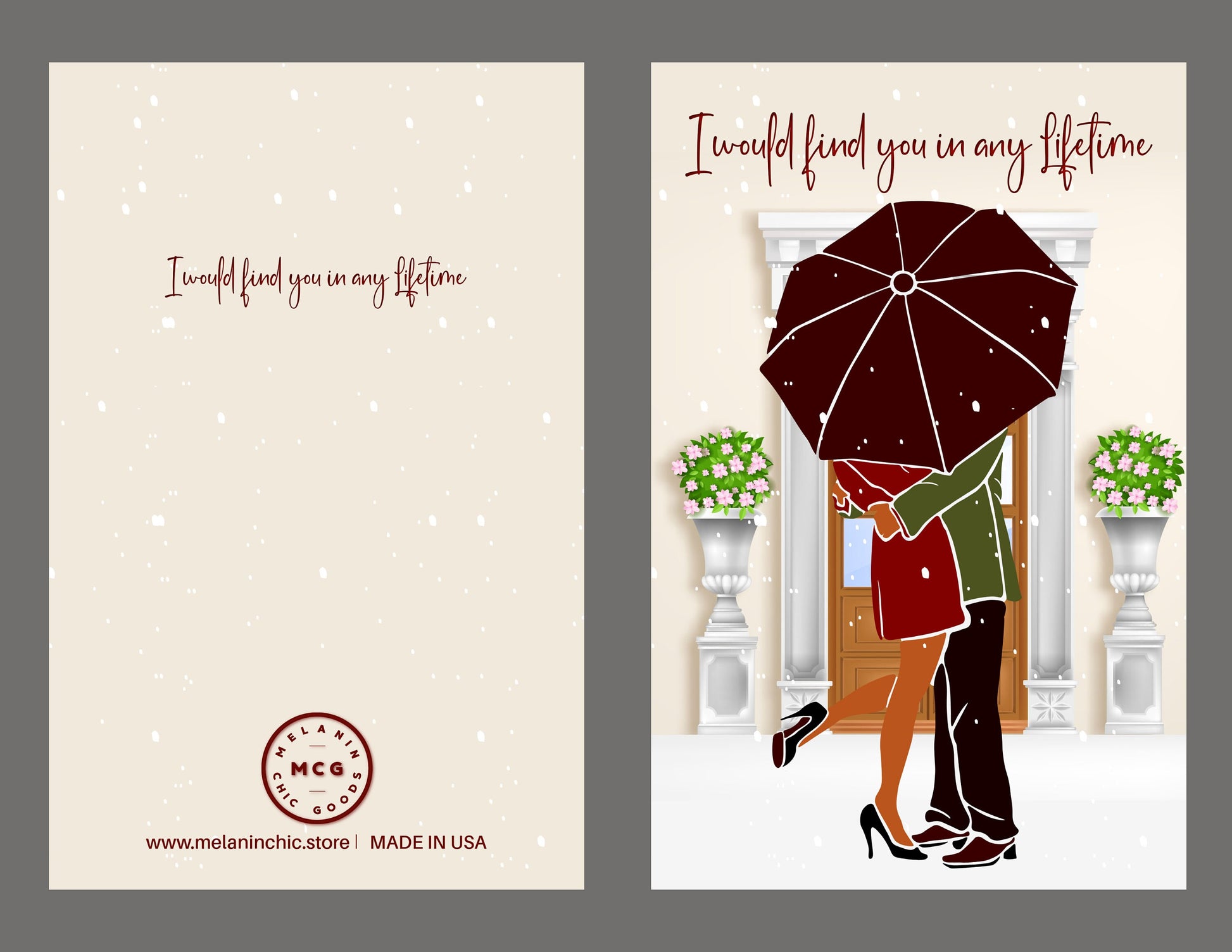 Say I love you without sacrificing style. Our African American greeting cards are a representation of who you are and how your feeling at the moment. Our cards are blank on the inside, so that you can write a personal message from the heart. Our greeting cards come as (1), (6) or (12) Count. If you would like different styles and tones; please message me the amount for each style and tone, and include your order# that you will receive when you check out. You will have the option to enter personalization information for most cards. Our cards are Full Size. The cards measure 5.5 x 8.5 folded, and 8.5 x 11 inches unfolded. Most of our cards are printed on gloss cardstock, and some are printed on linen cardstock. Our cards are great for Birthdays, Christmas, Anniversaries, Mother's Day, Father's Day, Graduation, Valentine's Day, and many more celebrations. Our greeting cards are great gifts to give to your Mother's, Father's, Brothers, Sisters, Children, Grandchildren, Grandparents,Friends and Co-workers. Give the gift of style and representation for that speacial event.