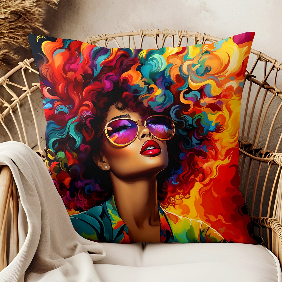 This African American pillow is a dream. Great for adding a pop of culture to any room. Room accents shouldn't be underrated. These beautiful indoor pillows in various sizes serve as statement pieces, creating a personalized environment. Features Include: - 100% Polyester cover - 100% Polyester pillow included - Double sided print - Concealed zipper