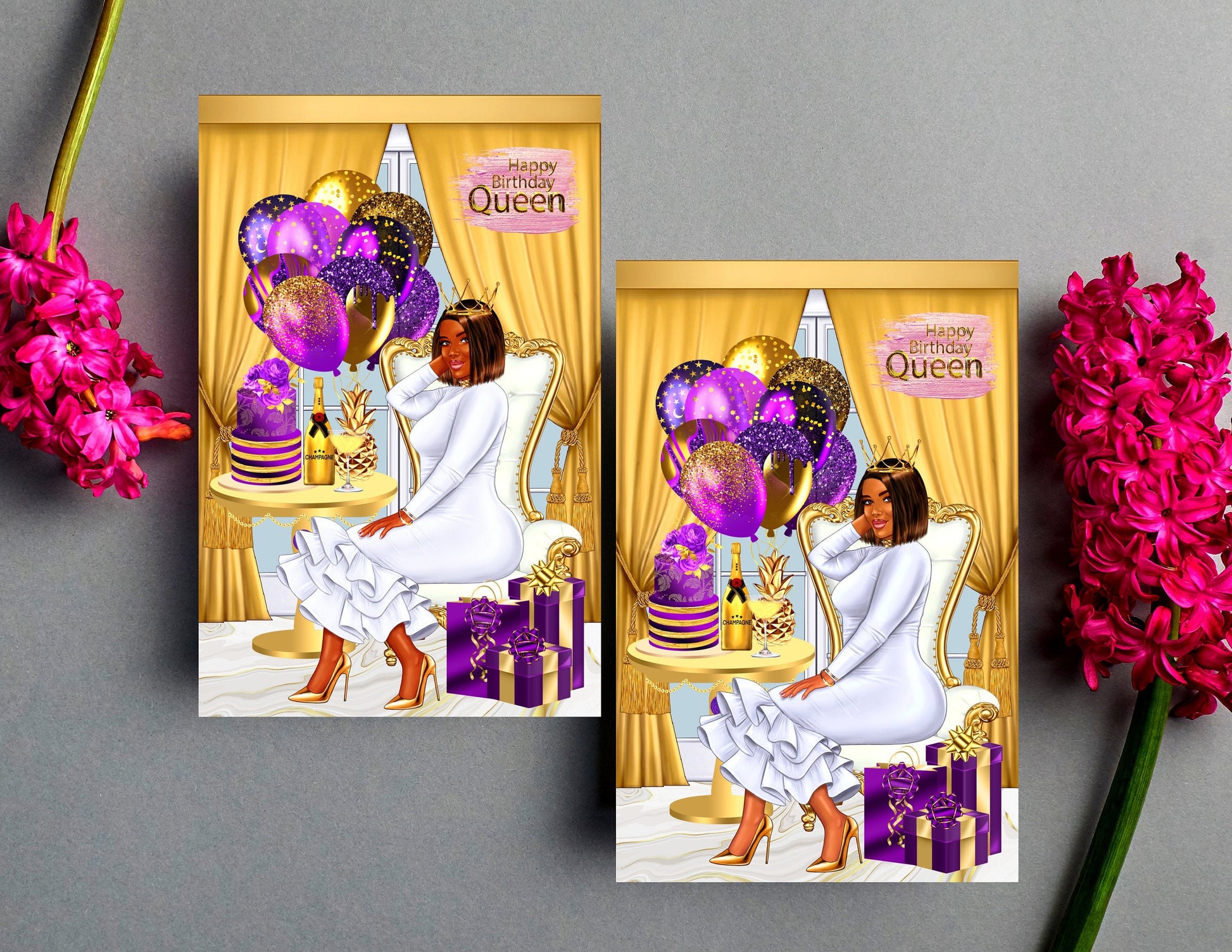Happy Birthday Queen, Black Greeting Cards