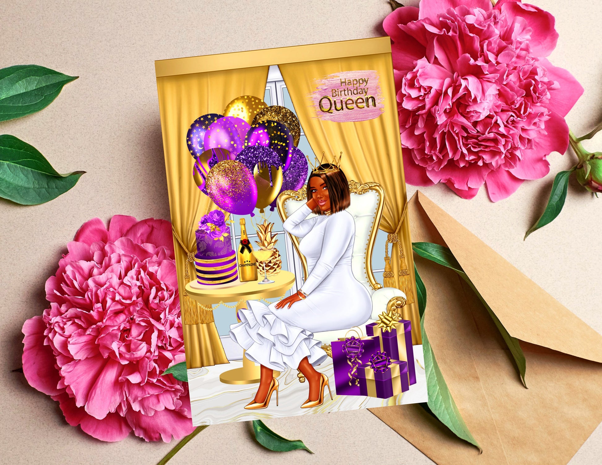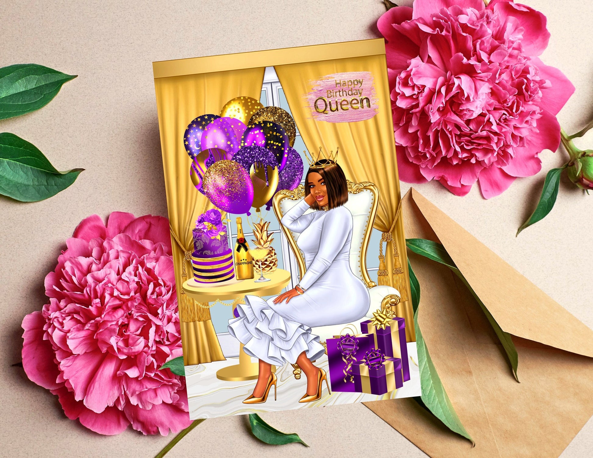 Say Happy Birthday without sacrificing style. Our African American greeting cards are a representation of who you are and how your feeling at the moment. Our cards are blank on the inside, so that you can write a personal message from the heart. Our greeting cards come as (1), (6) or (12) Count. If you would like different styles and tones; please message me the amount for each style and tone, and include your order# that you will receive when you check out. You will have the option to enter personalization information for most cards. Our cards are Full Size. The cards measure 5.5 x 8.5 folded, and 8.5 x 11 inches unfolded. Most of our cards are printed on gloss cardstock, and some are printed on linen cardstock. Our cards are great for Birthdays, Christmas, Anniversaries, Mother's Day, Father's Day, Graduation, Valentine's Day, and many more celebrations. Our greeting cards are great gifts to give to your Mother's, Father's, Brothers, Sisters, Children, Grandchildren, Grandparents,Friends and Co-workers. Give the gift of style and representation for that speacial event.