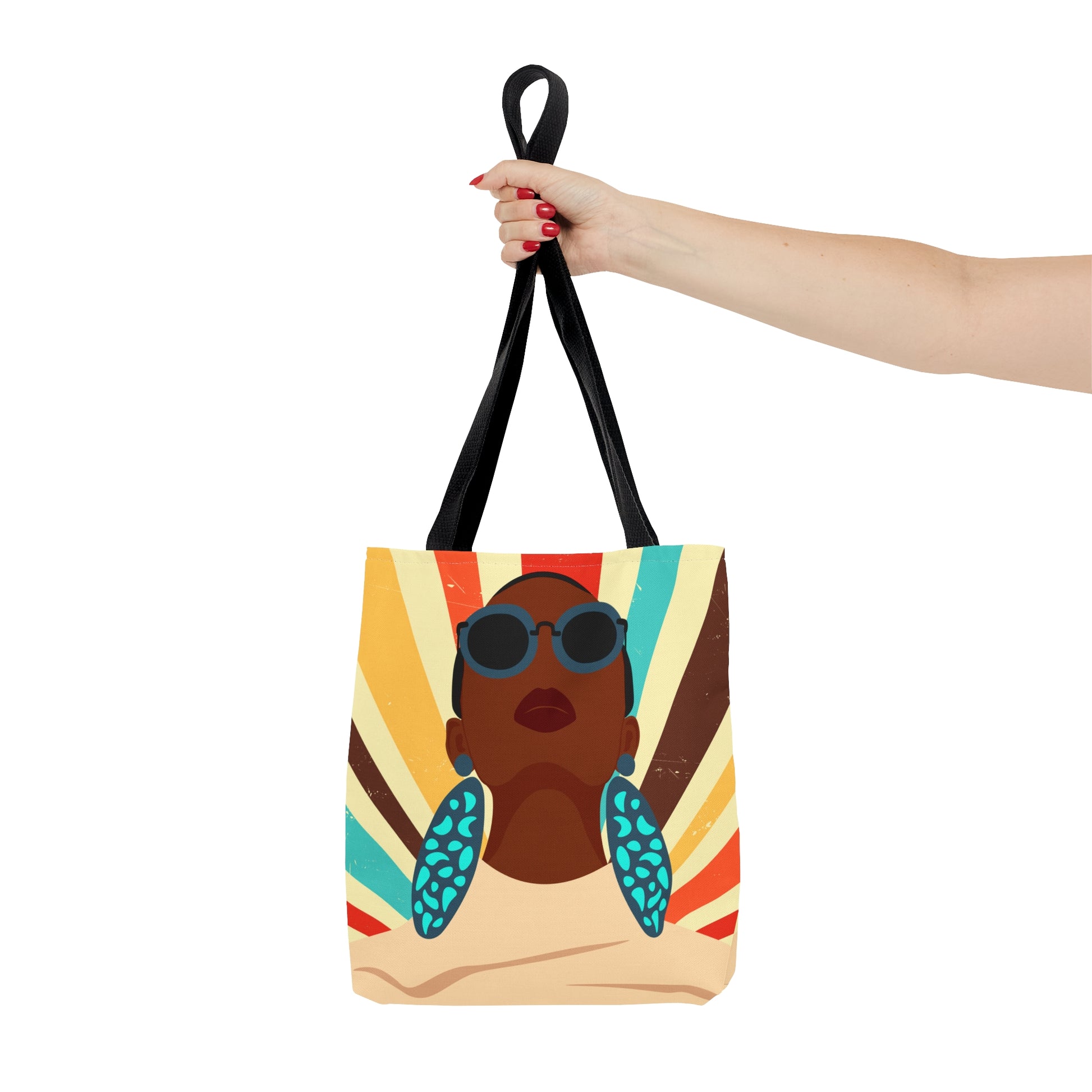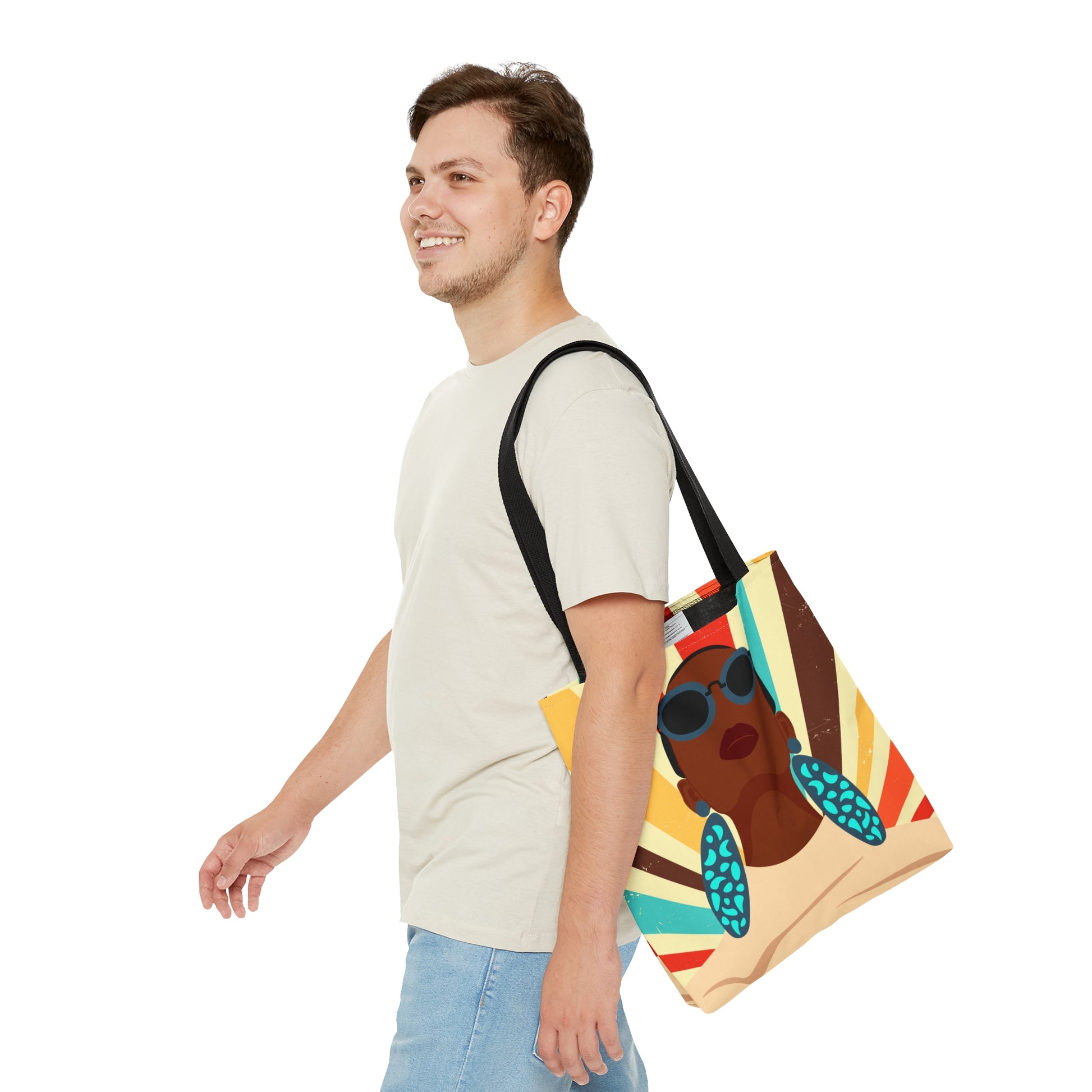 This practical, high-quality Tote Bag is available in three sizes. All over print provides comfort with style at the beach or out in town. Made from reliable materials, lasting for seasons. .: 100% Polyester .: Boxed corners .: Black cotton handles .: Black lining